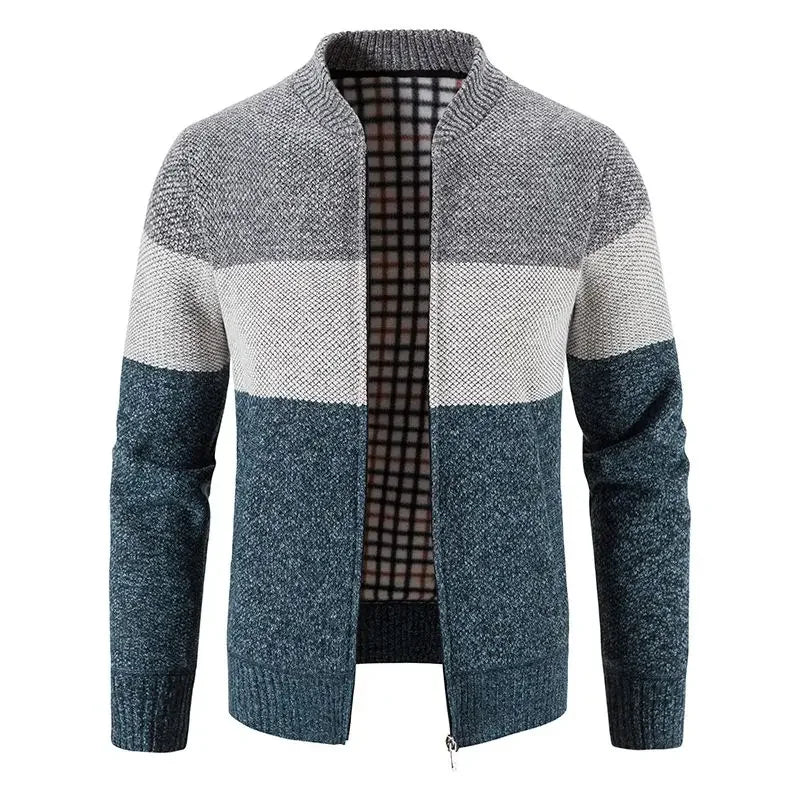Autumn and Winter Casual Sweater Plus Velvet Thickened Baseball Collar Men's Loose Color-blocked Sweater Thermal Jacket JJ393