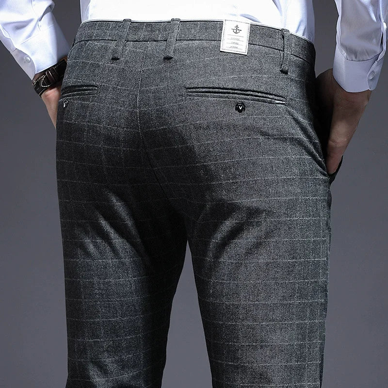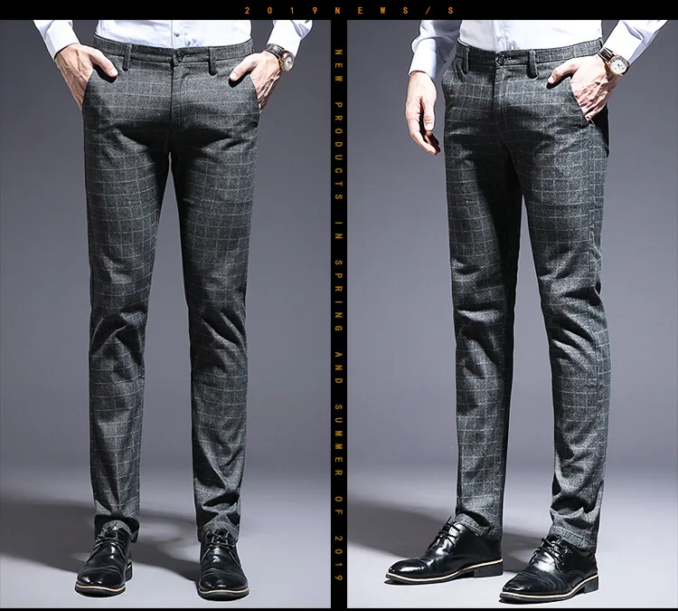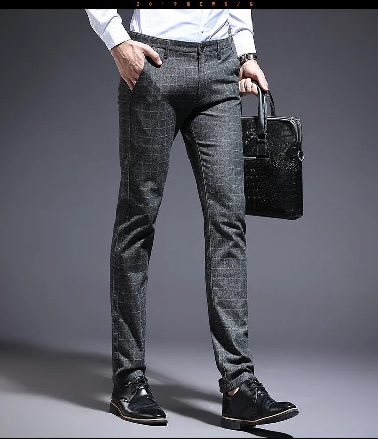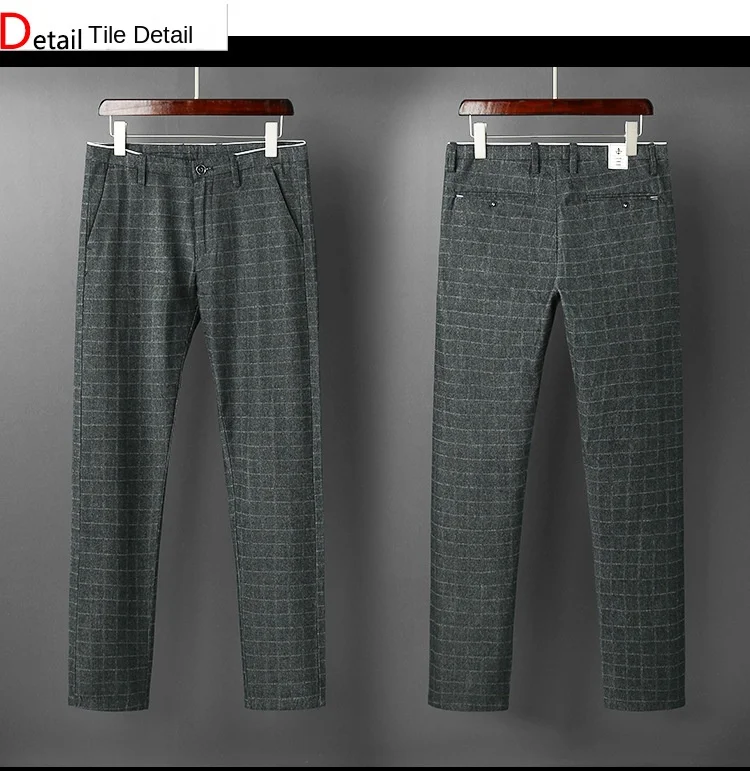 Autumn Thicken Plaid Formal Pant For Men Slim Fit Korea Style Suit Trousers For Men Fashion Office Weeding Party Mens Pants