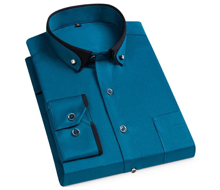 Men's Formal Long Sleeve Diamond Button Color Block Shirts with Left Chest Pocket - Wrinkle Free Stretch Silky Comfort Easy Care